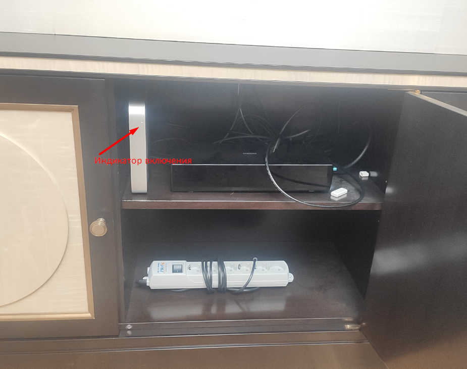 - Далее открываем дверцы под TV и смотрим на наш Mac mini вживую