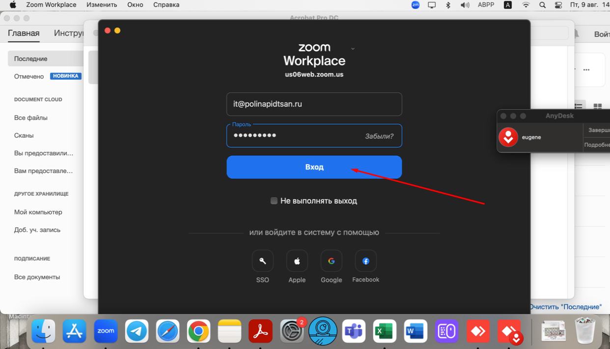 - Копируем электронную почту и пароль из заметок в ZOOM