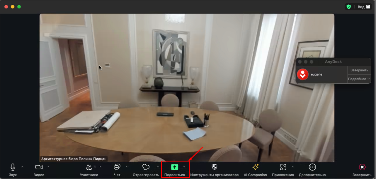 - Если нам нужно поделиться экраном с участниками, нажимаем "Поделиться"