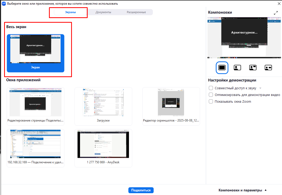 Выбираем раздел "Экраны" и выбираем "Весь экран"