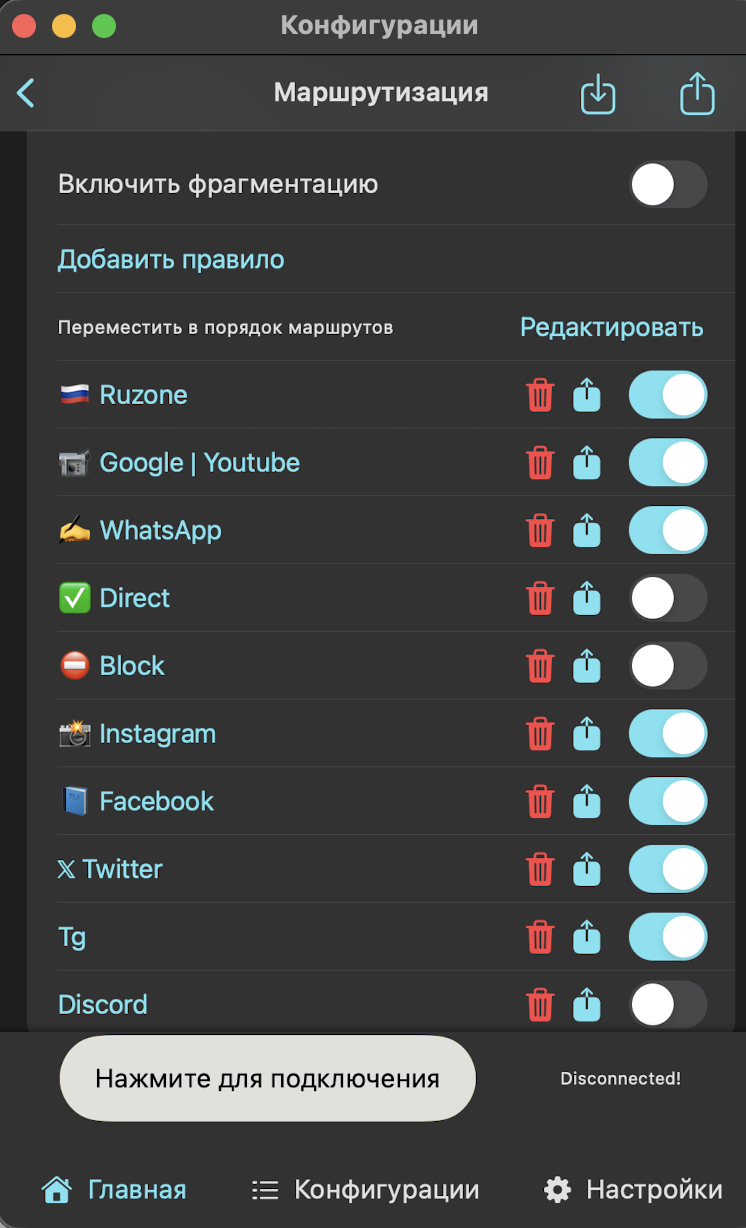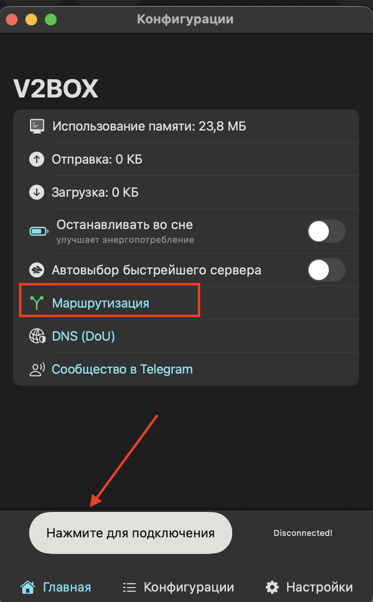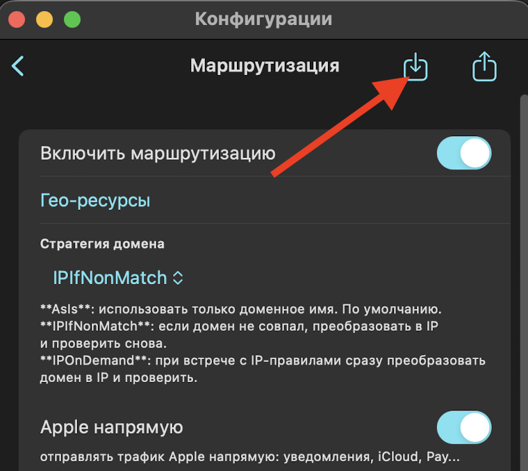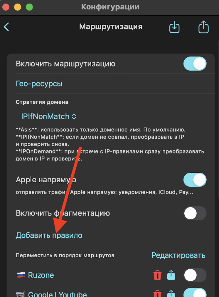Настройка маршрутизации в V2Box (для техники Apple) - Разверните блок