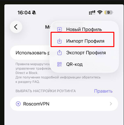 2. Сразу нажимаем на "три точки" справа сверху и Импортируем профиль