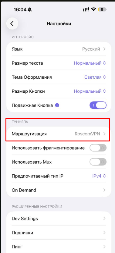 Настройка маршрутизации в приложении Happ (для Android и Apple) - Разверните блок